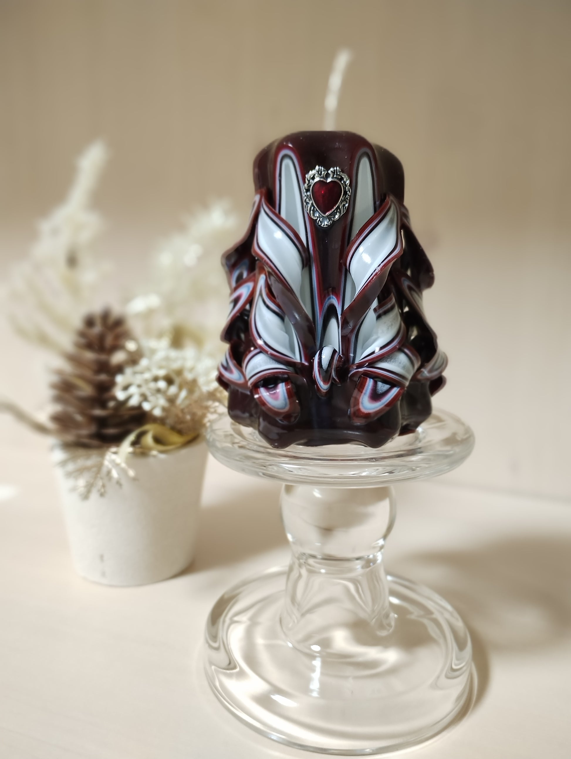 深い茶色で落ち着いた雰囲気のキャンドルです。